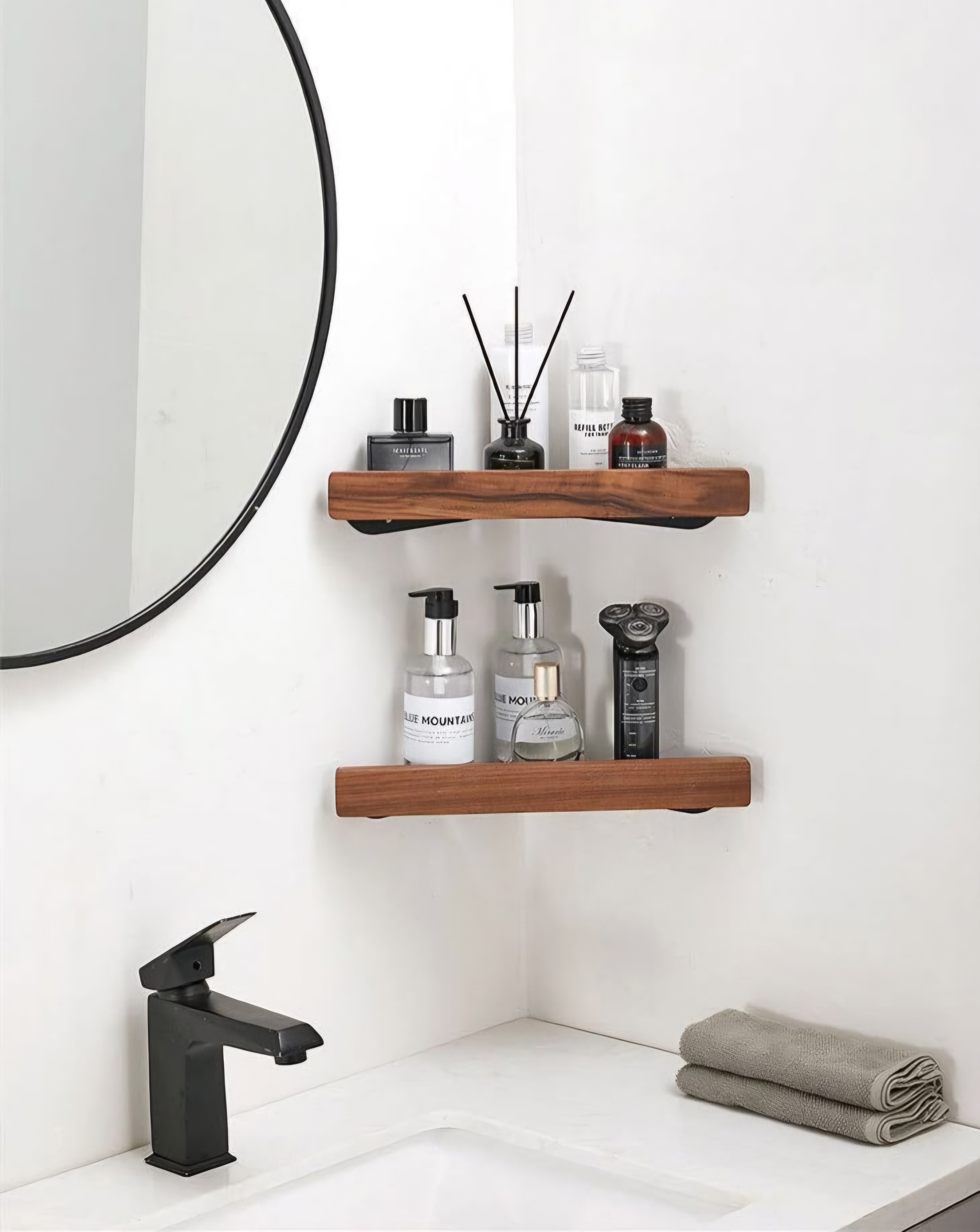 شلف فلز و چوب کنجی حمام 2 عددی